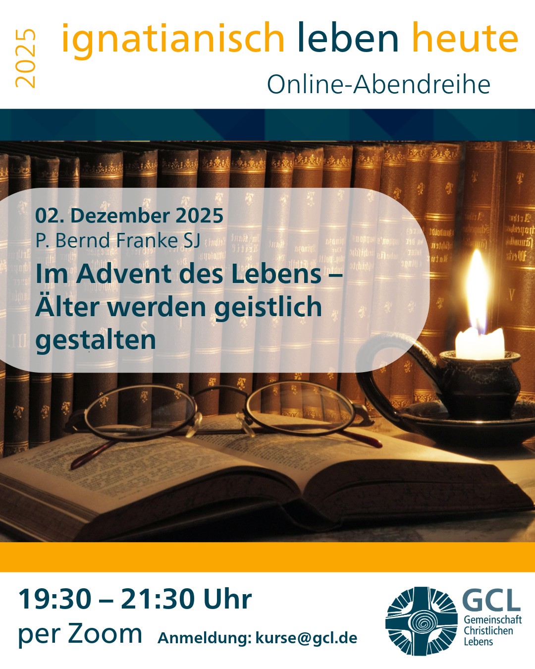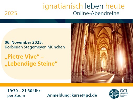 Sie wollen Gott suchen und finden? In Ihrem Leben, in Ihren Begegnungen, in Ihrem Alltag. Sie wollen den Geschmack eines erfüllten Lebens kosten? Und dies mit anderen zusammen tun. – Sie wollen lernen, wichtige Entscheidungen aus der Kraft eines reflektierten Glaubens heraus zu treffen? Dann lernen Sie die GCL kennen …