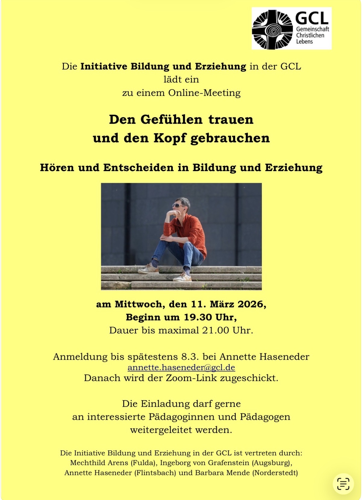 Anmeldung bitte bis zum 08. März 2026 an: an Annette Haseneder annette.haseneder@gcl.de